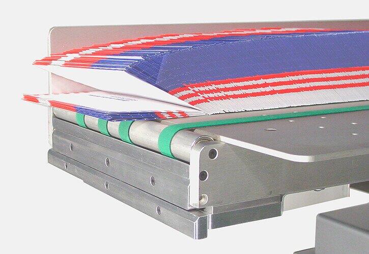 The KR533 manages nearly six feet of material and delivers it into the hopper as needed. The hopper level is maintained within a narrow range keeping the feed consistent while the jogger assembly keeps product straight in the hopper.